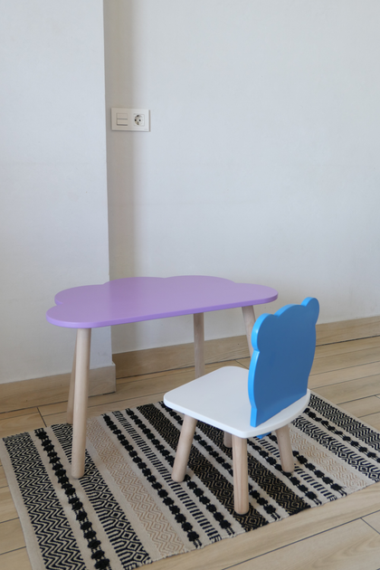 Комплект стіл та стілець дитячий ChildWood - Set Стіл бузковий хмаринка + стілець білий блакитний Мишка (Фанера)