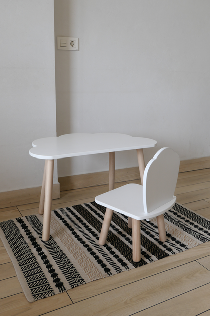 Комплект стіл та стілець дитячий ChildWood - Set Стіл білий хмаринка + стілець білий Мушля (Фанера)
