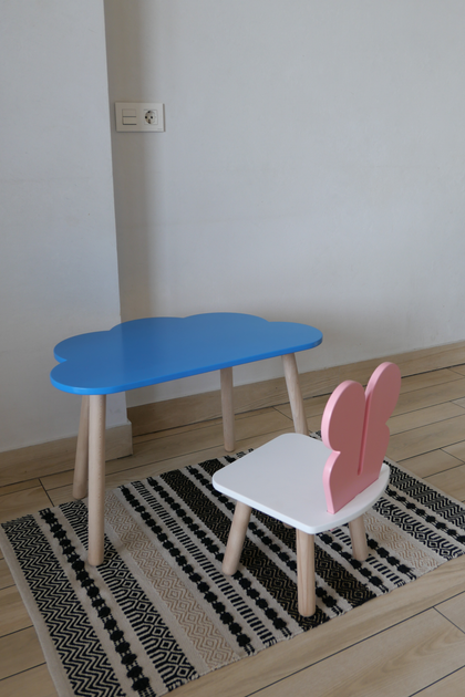 Комплект стіл та стілець дитячий ChildWood - Set Стіл блакитний хмаринка + стілець білий рожевий Метелик (Фанера)