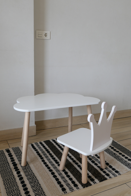 Комплект стіл та стілець дитячий ChildWood - Set Стіл білий хмаринка + стілець білий Корона (Фанера)