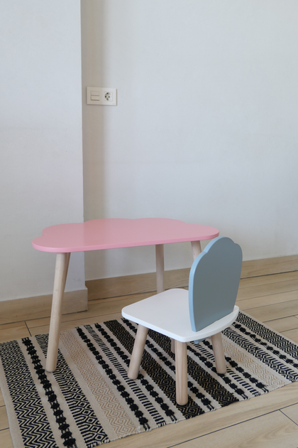 Комплект стіл та стілець дитячий ChildWood - Set Стіл рожевий хмаринка + стілець білий сірий Мушля (Фанера)