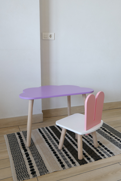 Комплект стіл та стілець дитячий ChildWood - Set Стіл бузковий хмаринка + стілець білий рожевий Зайчик (Фанера)