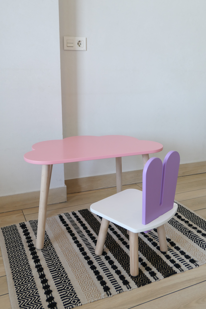 Комплект стіл та стілець дитячий ChildWood - Set Стіл розовий хмарина + стілець білий бузковий Зайчик (Фанера)