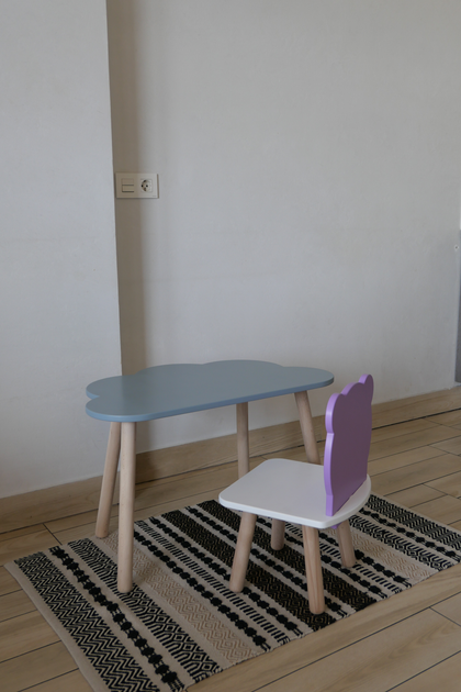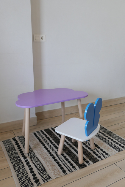 Комплект стіл та стілець дитячий ChildWood - Set Стіл бузковий хмаринка + стілець білий блакитний Метелик (Фанера)