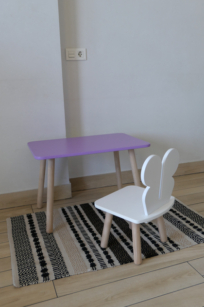 Комплект стіл та стілець дитячий ChildWood - Set Стіл бузковий прямокутний + стілець білий Метелик (Фанера)