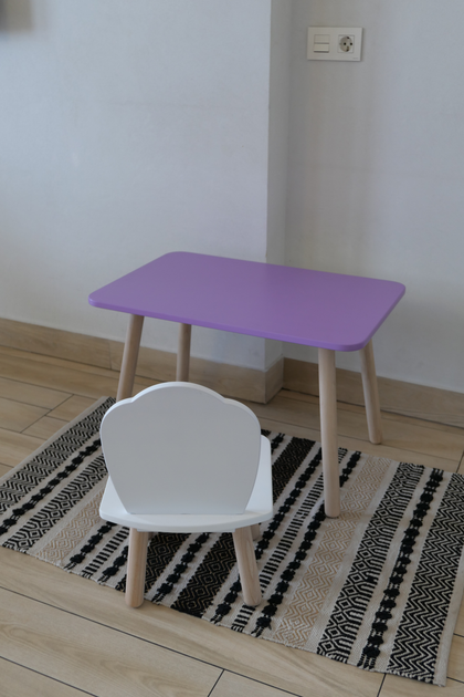 Комплект стіл та стілець дитячий ChildWood - Set Стіл бузковий прямокутний + стілець білий Мушля (Фанера)