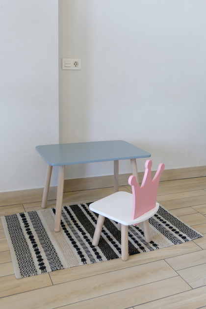 Комплект стіл та стілець дитячий ChildWood - Set Стіл сірий прямокутний + стілець білий Корона (Фанера)