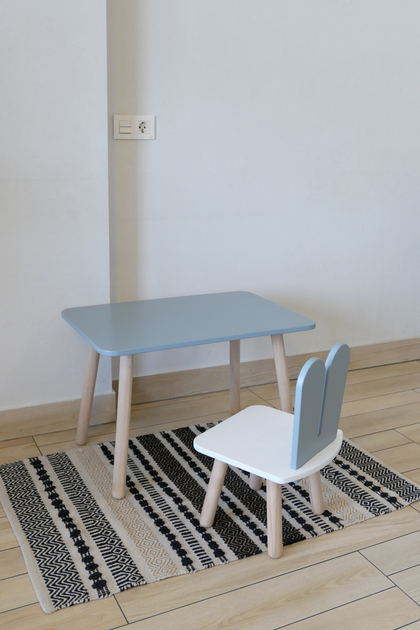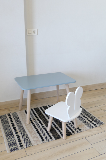 Комплект стіл та стілець дитячий ChildWood - Set Стіл сірий прямокутний + стілець білий сірий Зайчик (Фанера)