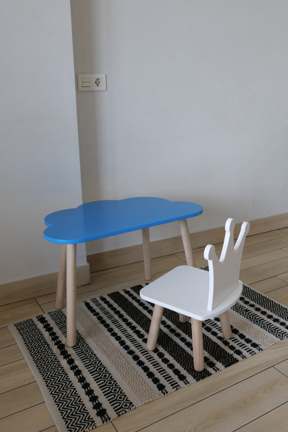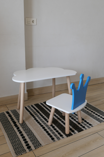 Комплект стіл та стілець дитячий ChildWood - Set Стіл блакитний хмаринка + стілець білий Корона (Фанера)