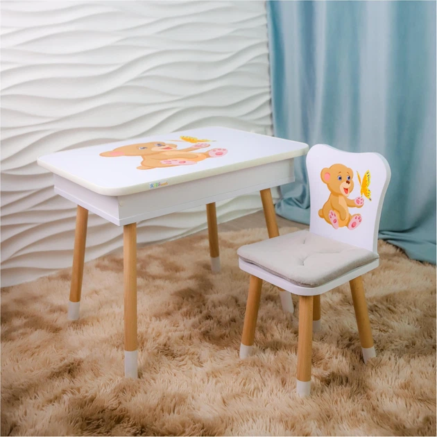 Дитячий стіл з пеналом + стілець з м'якою подушкою для сидіння ВЕДМЕЖАТКО
