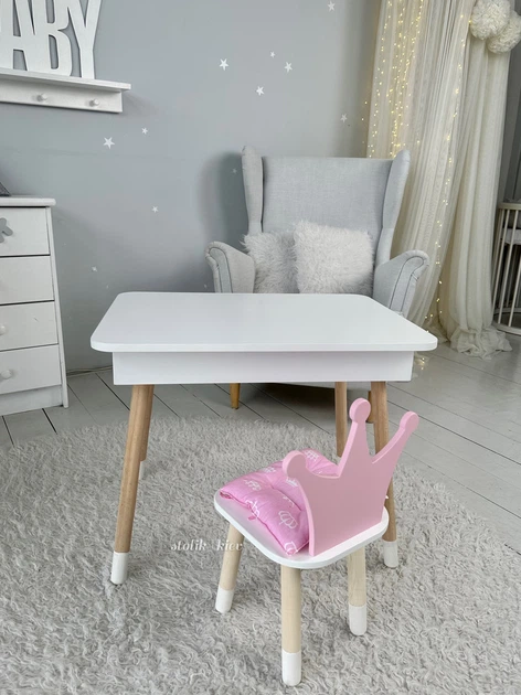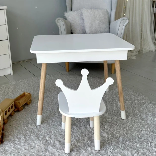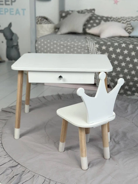 Дитячий столик з ящиком 53х60х45 і стільчик корона 26.5х26х25, столик із шухлядою та стілець для дитини до 7 років, білий