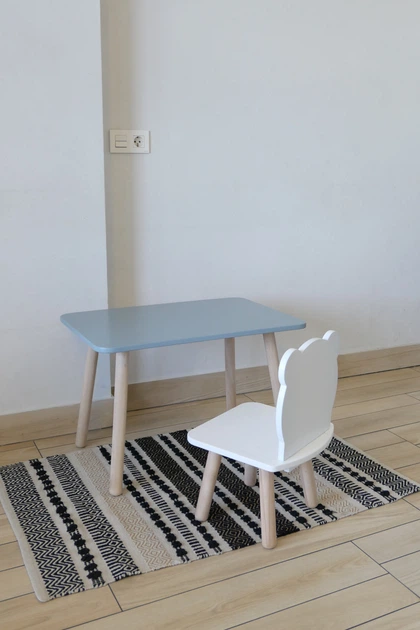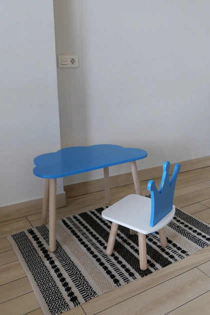 Комплект стіл та стілець дитячий ChildWood - Set Стіл блакитний хмарина + стілець білий блакитний Корона (Фанера)