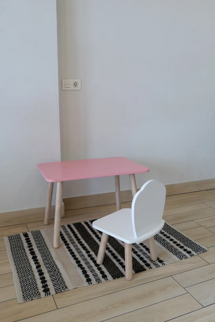 Комплект стіл та стілець дитячий ChildWood - Set Стіл розовий прямокутний + стілець білий Мушля (Фанера)
