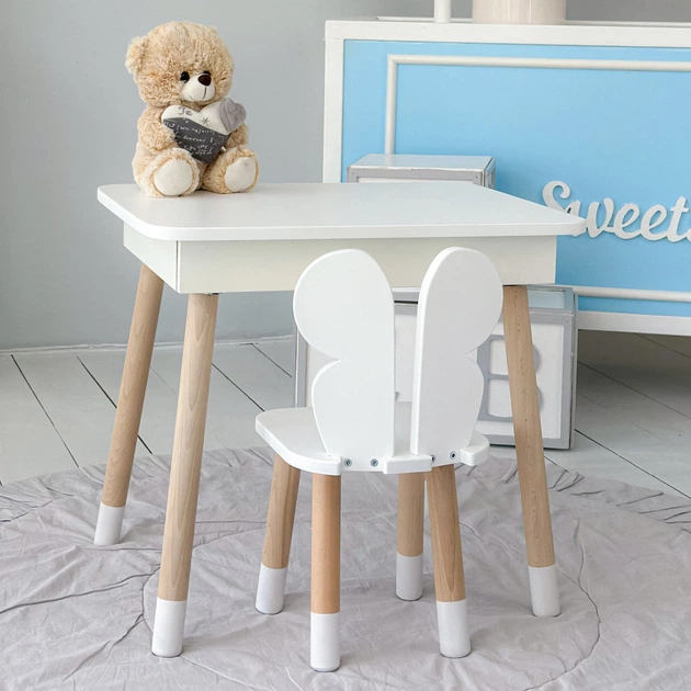 Комплект стіл та стілець дитячий ChildWood - Set Стіл сірий прямокутний + стілець білий Медведик (Фанера)