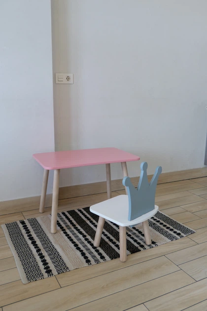 Комплект стіл та стілець дитячий ChildWood - Set Стіл розовий прямокутний + стілець білий сірий Корона (Фанера)