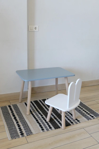 Комплект стіл та стілець дитячий ChildWood - Set Стіл сірий прямокутний + стілець білий Зайчик (Фанера)