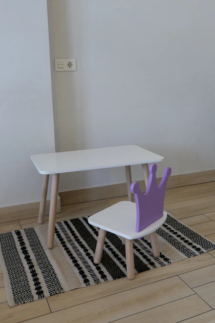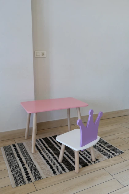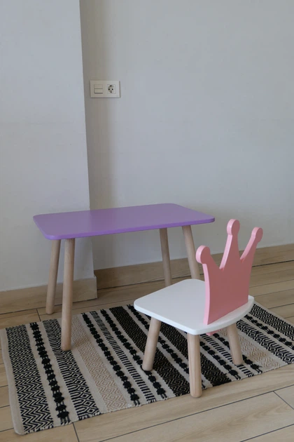 Комплект стіл та стілець дитячий ChildWood - Set Стіл бузковий прямокутний + стілець білий рожевий Корона (Фанера)