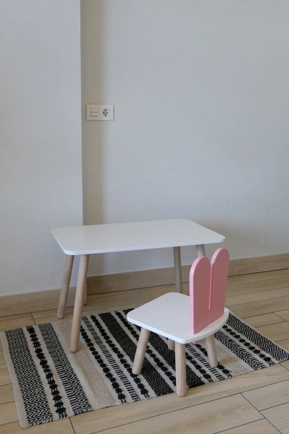 Комплект стіл та стілець дитячий ChildWood - Set Стіл білий прямокутний + стілець білий зайчик (Фанера)
