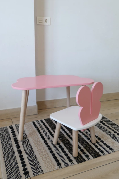 Комплект стіл та стілець дитячий ChildWood - Set Стіл рожевий хмарина + стілець білий рожевий Метелик (Фанера)