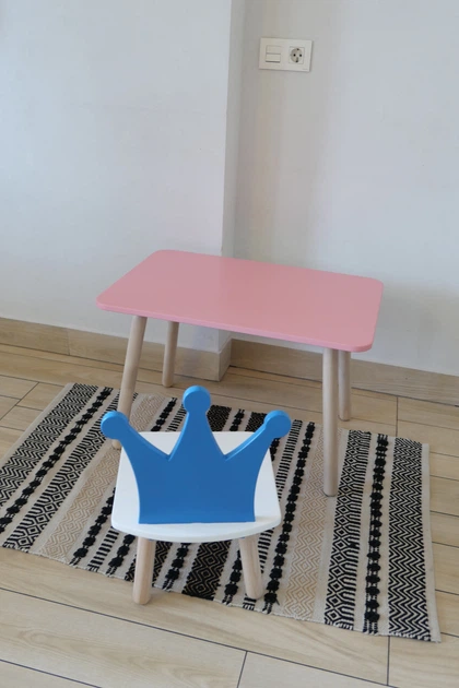 Комплект стіл та стілець дитячий ChildWood - Set Стіл розовий прямокутний + стілець білий блакитний Корона (Фанера)