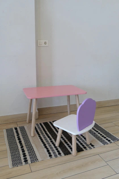 Комплект стіл та стул дитячий ChildWood - Set Стіл рожевий прямокутний + стілець білий бузковий Мушля (Фанера)
