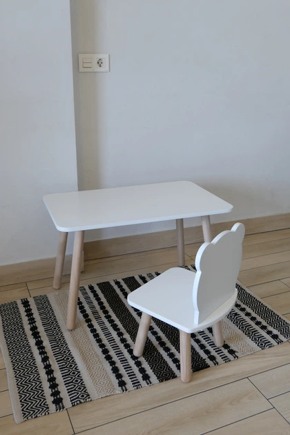 Комплект стіл та стілець дитячий ChildWood - Set Стіл білий прямокутний + стілець білий Мишка (Фанера)
