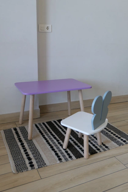 Комплект стіл та стілець дитячий ChildWood - Set Стіл бузковий прямокутний + стілець білий сірий Метелик (Фанера)