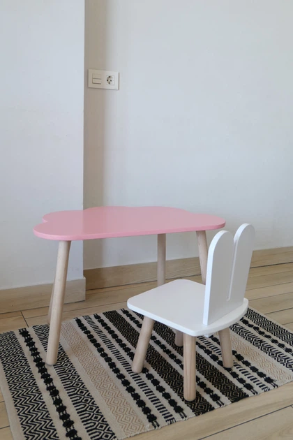 Комплект стіл та стілець дитячий ChildWood - Set Стіл розовий хмарина + стілець білий Зайчик (Фанера)