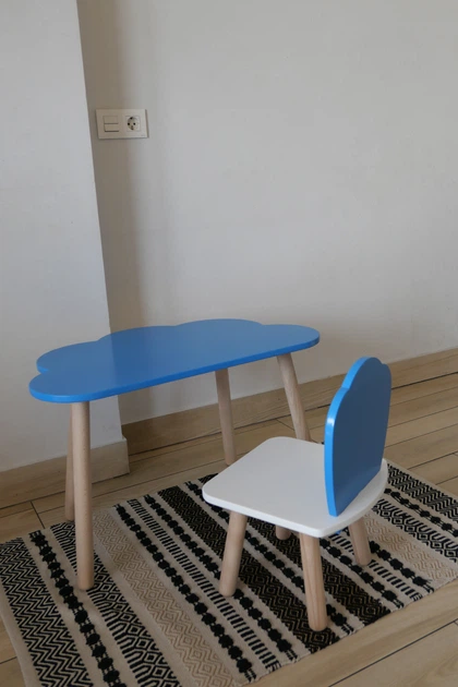 Комплект стіл та стілець дитячий ChildWood - Set Стіл блакитний хмаринка + стілець білий блакитний Мушля (Фанера)