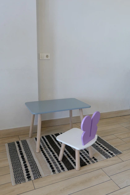 Комплект стіл та стілець дитячий ChildWood - Set Стіл сірий прямокутний + стілець білий зайчик (Фанера)