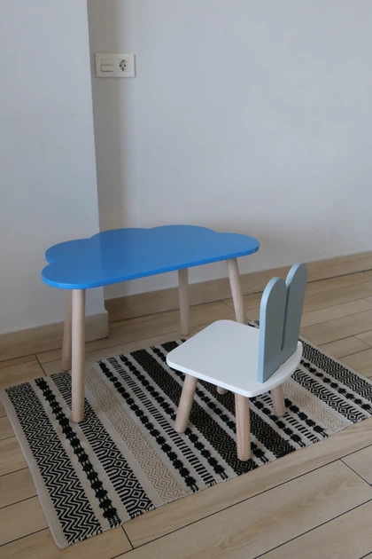 Комплект стіл та стілець дитячий ChildWood - Set Стіл блакитний хмаринка + стілець білий сірий Зайчик (Фанера)