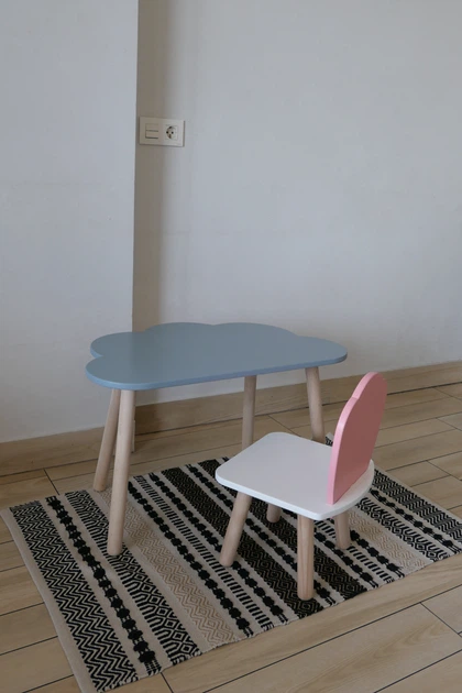 Комплект стіл та стілець дитячий ChildWood - Set Стіл блакитний хмаринка + стілець білий Мишка (Фанера)