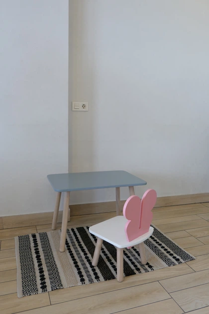 Комплект стіл та стілець дитячий ChildWood - Set Стіл сірий прямокутний + стілець білий рожевий Метелик (Фанера)