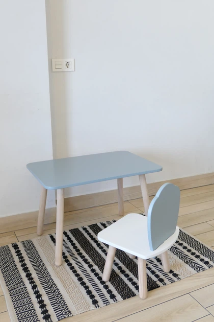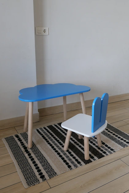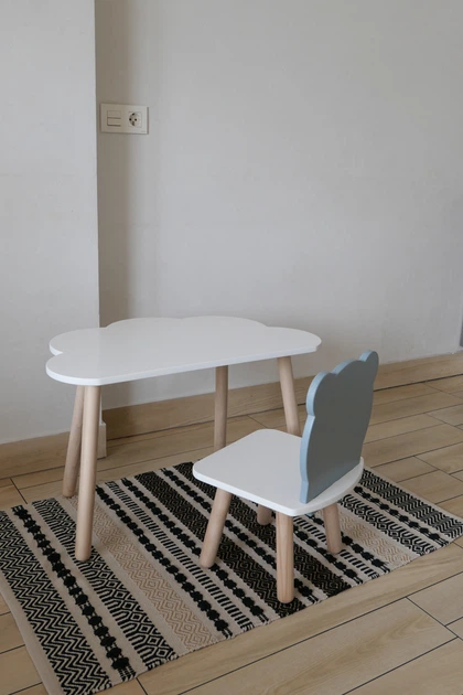 Комплект стіл та стілець дитячий ChildWood - Set Стіл блакитний хмаринка + стілець білий блакитний Зайчик (Фанера)