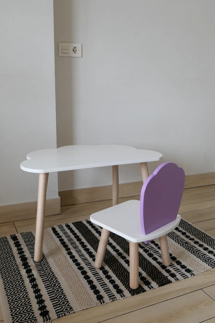 Комплект стіл та стілець дитячий ChildWood - Set Стіл білий хмаринка + стілець білий бузковий Мушля (Фанера)