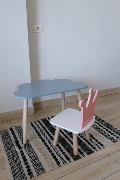 Комплект стіл та стілець дитячий ChildWood - Set Стіл блакитний хмаринка + стілець білий Корона (Фанера)