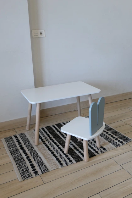 Комплект стіл та стілець дитячий ChildWood - Set Стіл білий прямокутний + стіл білий сірий Зайчик (Фанера)