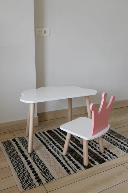 Комплект стіл та стілець дитячий ChildWood - Set Стіл білий хмарина + стілець білий розовий Корона (Фанера)