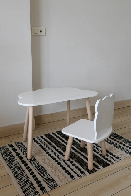 Комплект стіл та стілець дитячий ChildWood - Set Стіл білий хмарина + стілець білий Мишка (Фанера)