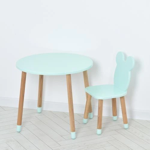 Столик дерев'яний круглий зі стільцем ARINWOOD бірюзовий 07-025B-ROUND