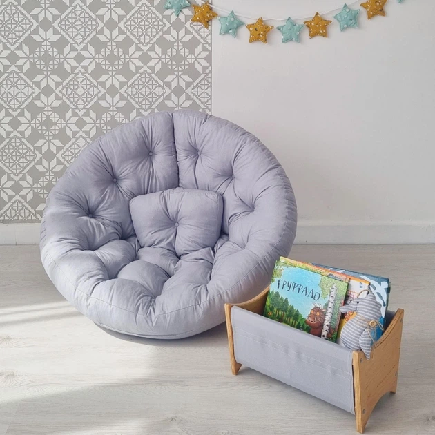 Дитяче крісло трансформер дизайнерське футон безкаркасне з водовідштовхуючої тканини весна сірий