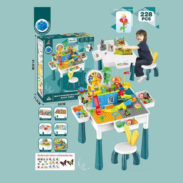 Столик з конструктором hx 839-85 b (6) висота 50см, 228 деталей, стільчик висотою 42см, ігрові фігурки, оглядове колесо, в к