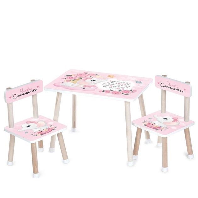 Дитячий дерев'яний столик "Слоненятко" Bambi M 501-14 з двома стільчиками, українська абетка