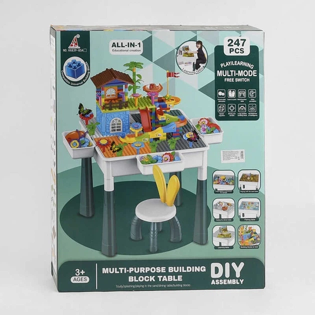 Столик з конструктором hx 839-85 a (6) висота 50см, 247 деталей, стільчик висотою 42см, ігрові фігурки, гірки, в коробці