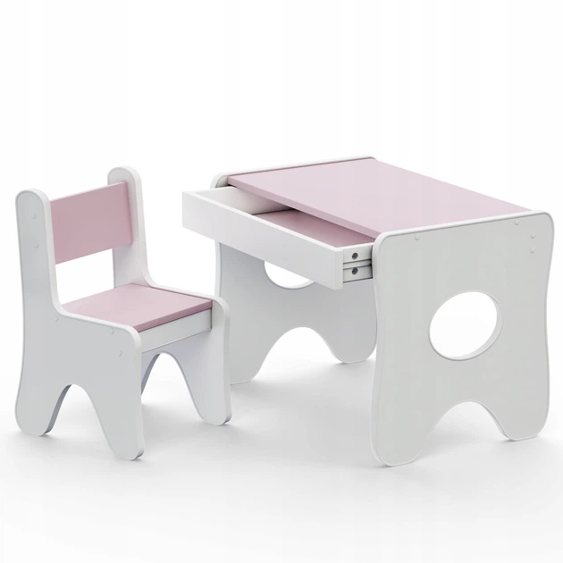 Набір дитячих меблів столик з ящиком та стільчик 704551, стіл та стілець для дітей, білий з рожевим