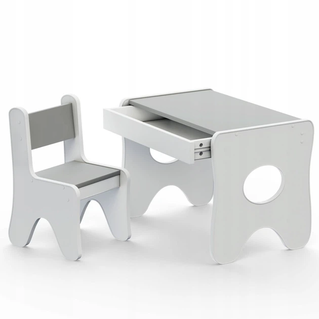 Дитячий столик та стільчик 704551 для малювання з висувним ящиком, для їжі та занять, білий з сірим