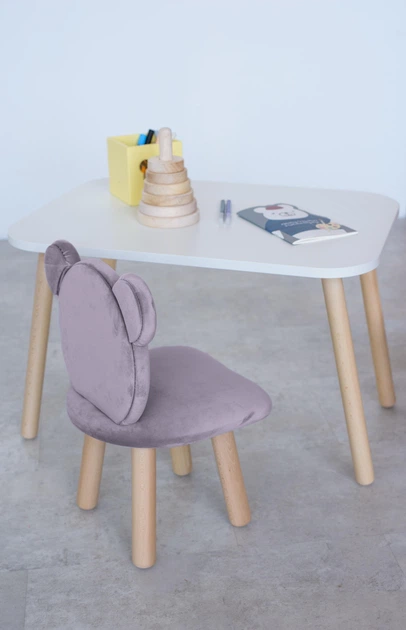 Комплект: прямокутний столик та стільчик Dreamer Ведмедик, 5-7 років, Бузковий