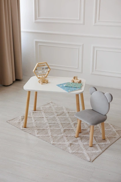 Комплект: прямокутний столик та стільчик Dreamer Ведмедик, 5-7 років, Сірий