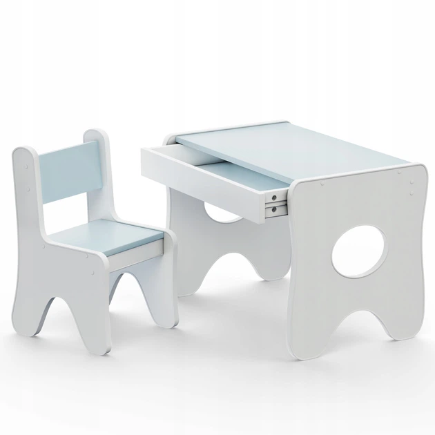 Столик та стільчик для дитини 704551, дитячий гральний стіл та стілець, білий з блакитним