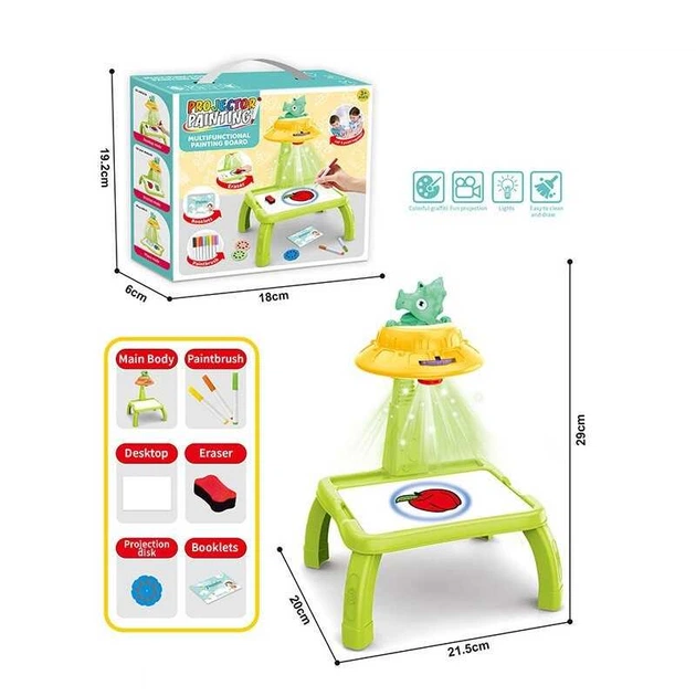 Столик із проєктором ZF 1004 G на батарейках, “Динозавр”, підсвітка, диски, фломастери, в коробці